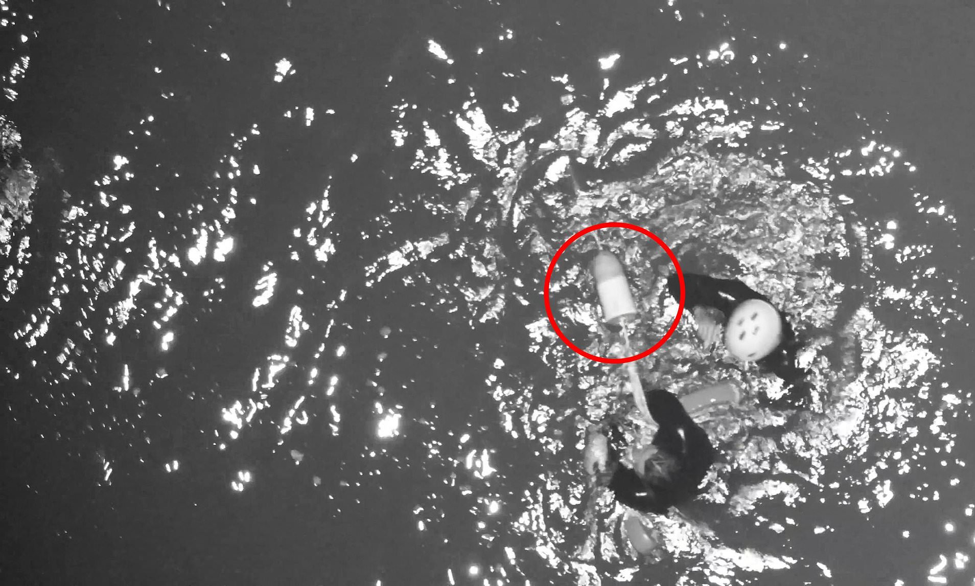 Footage showed him clinging to a lobster trap buoy, ultimately saved him from being dragged further out to sea.